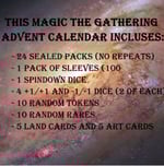 A different sealed pack (play, set, draft, jumpstart etc) each day spanning years of Magic the Gathering history along with extra goodies spread throughout to assist any MTG player.